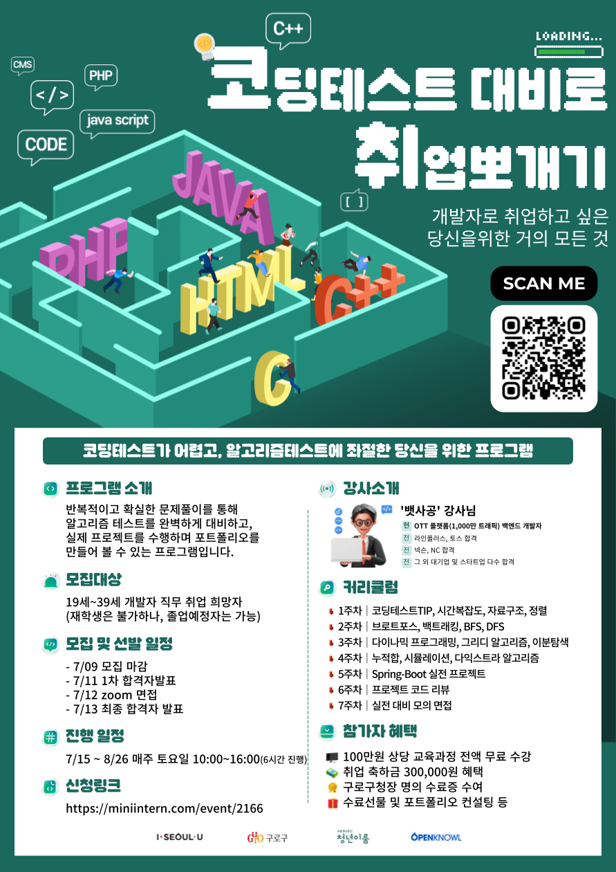 구로 청년이룸 / 코딩테스트 대비로 취업뽀개기