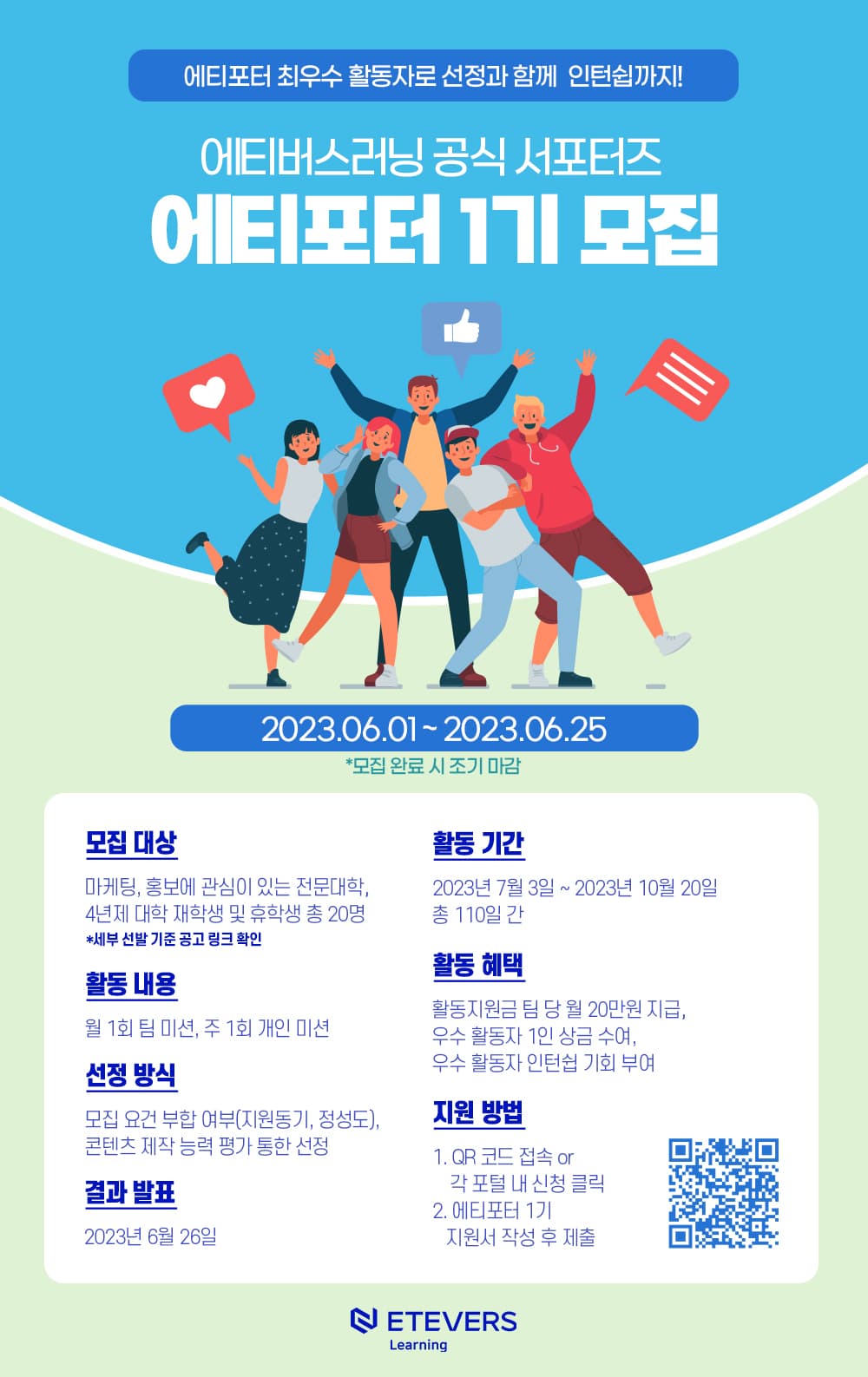 고용노동부 인증 교육 기관 ‘에티버스러닝’에서 공식 서포터즈 <에티포터> 1기를 모집합니다.