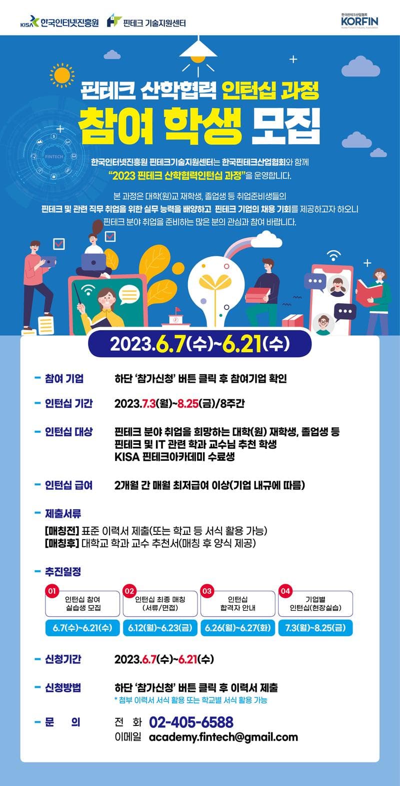 [KISA] 핀테크 산학협력 인턴십 과정 학생 모집(6/21까지)