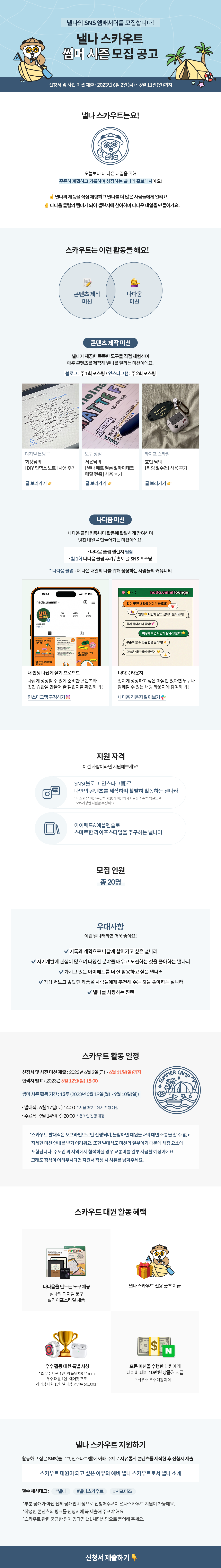 신청서 링크 : https://nelna.shop/2023nelnascout_summerseason