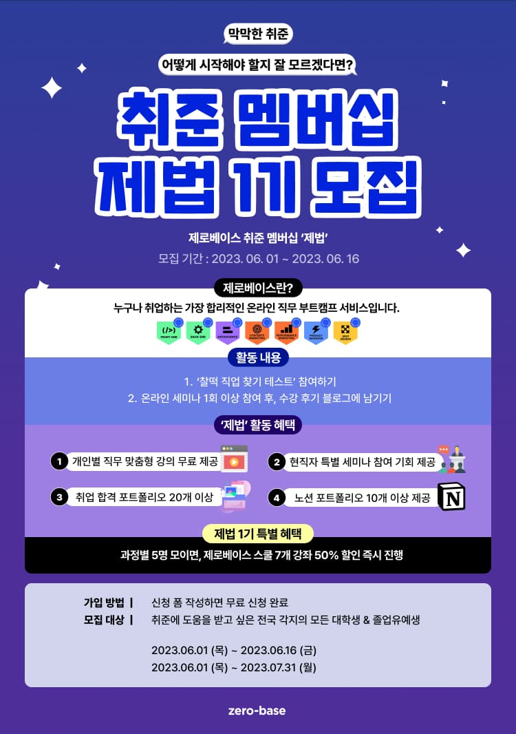 제로베이스 ‘제법’ 멤버십 신청하고 빠르고 쉽게 ‘취뽀’하자!