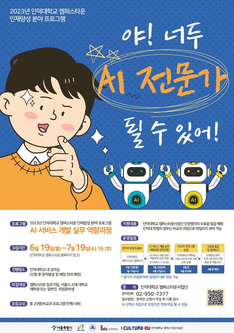 [인덕대학교/무료] AI 서비스 개발 실무 역량 과정 (\~7/19)