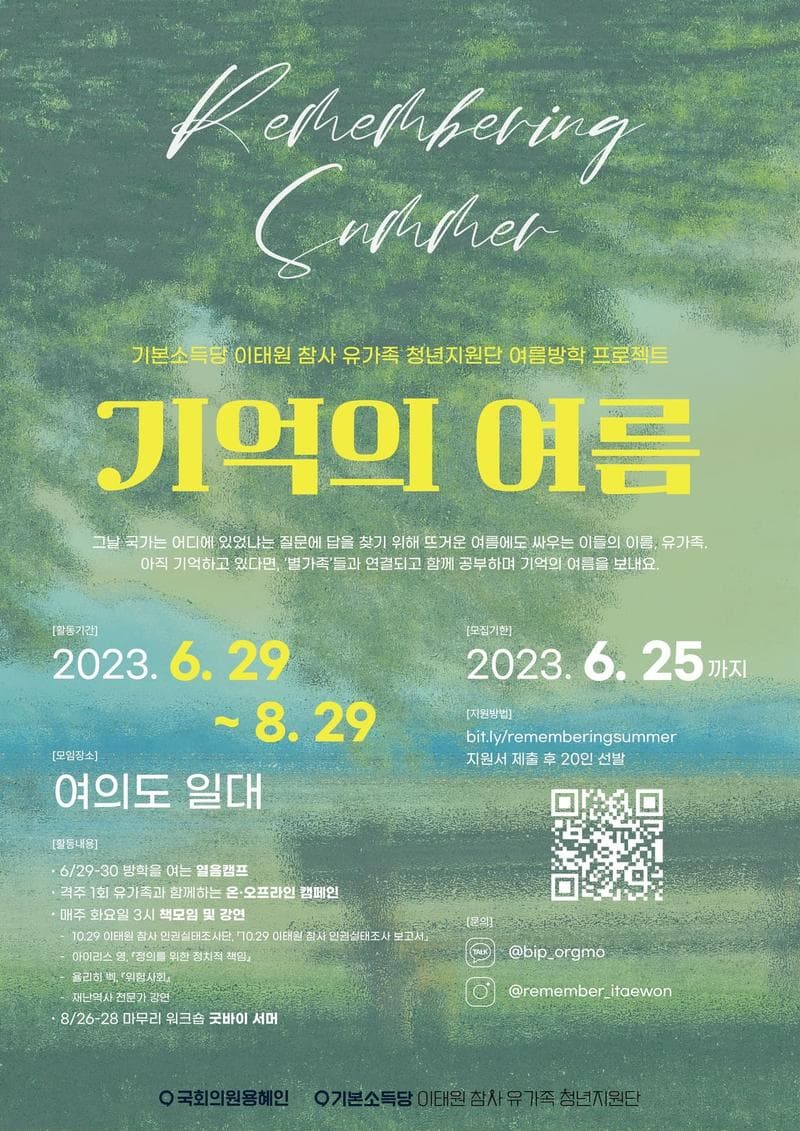 여전히 10월 29일을 기억하고 있다면, 이제는 무언가 행동하려고 한다면 <기억의 여름>에 함께해보면 어떨까요? 이번 여름방학을 기억의 여름으로 만들기 👉 https://bit.ly/rememberingsummer