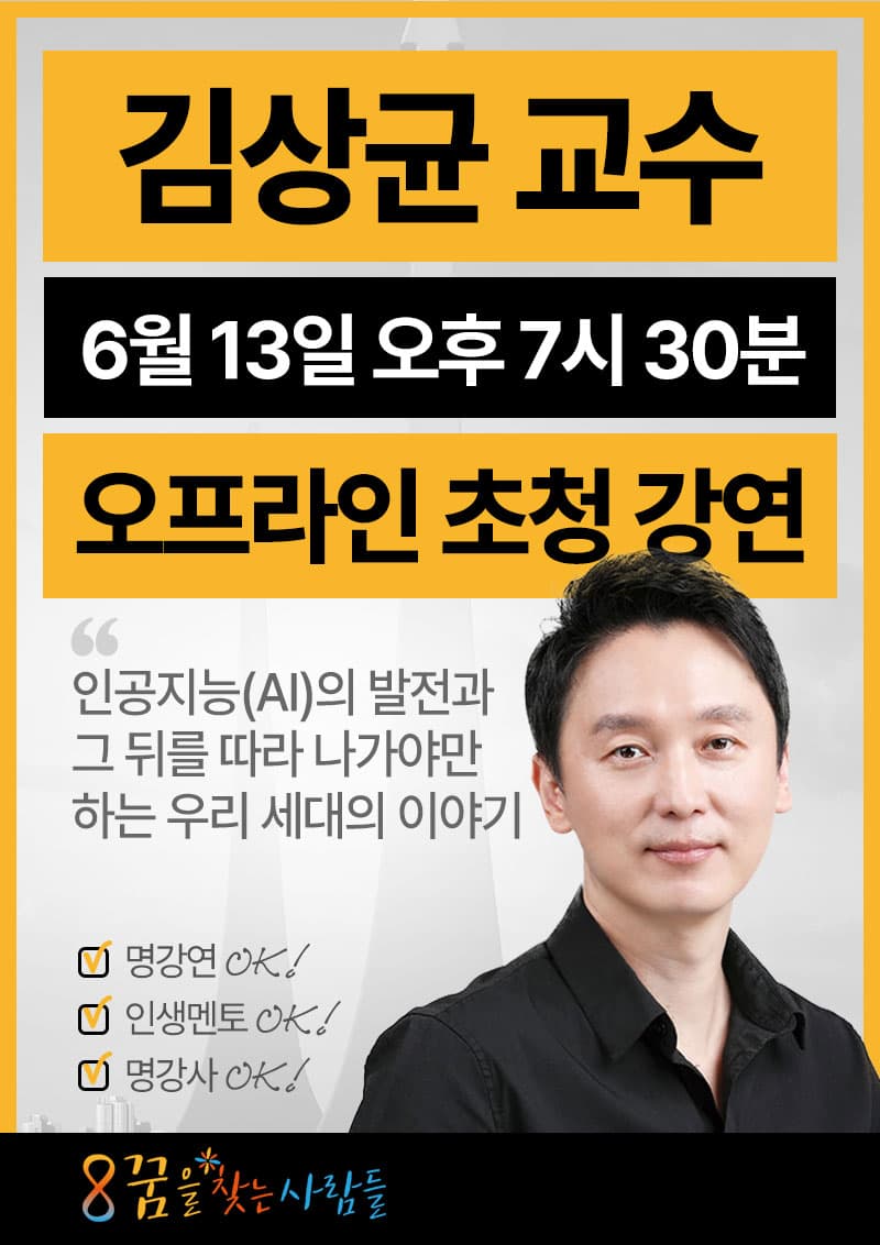 <꿈을 찾는 사람들, 꿈찾사> ★무료강연★ 김상균 교수의 ‘초인류’만 살아남는 시대, 컴퓨터, 휴대폰의 등장만큼 큰 변화에서 현명하게 살아남는 방법!