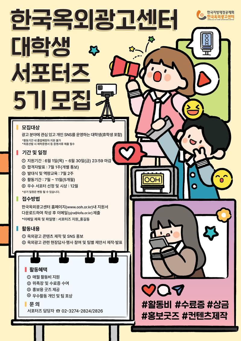 - 한국지방재정공제회 한국옥외광고센터는 대학생 서포터즈를 운영하여