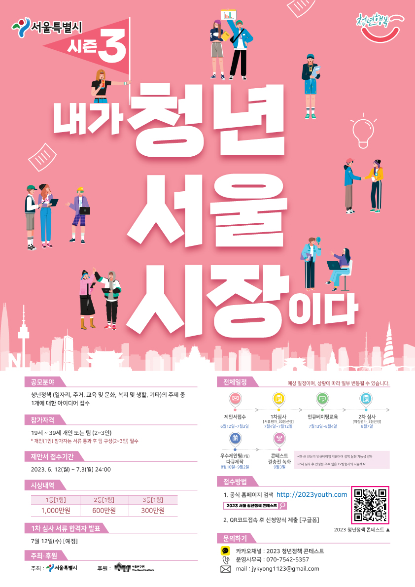 ☎ 문의 카카오채널: 2023 청년정책 콘테스트 전화번호: 070-7542-5357 E-mail: jykyong1123@gmail.com 🌍 SNS** https://www.instagram.com/iam_ysm_official/