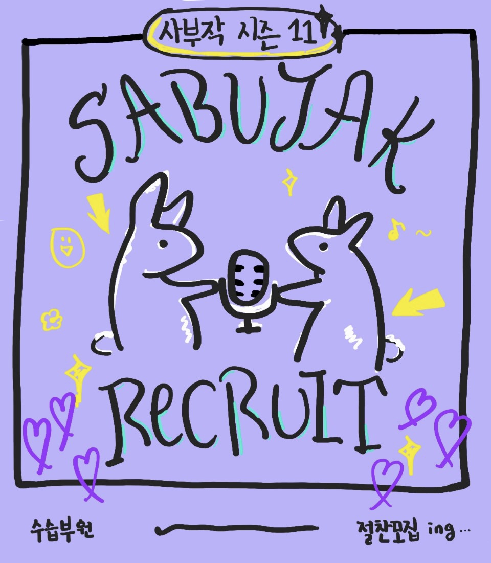 ✨팟캐스트 ‘사부작’ 시즌11 수습부원 모집 🎙️팟캐스트 사부작 시즌11 수습부원을 모집합니다! 🎙️