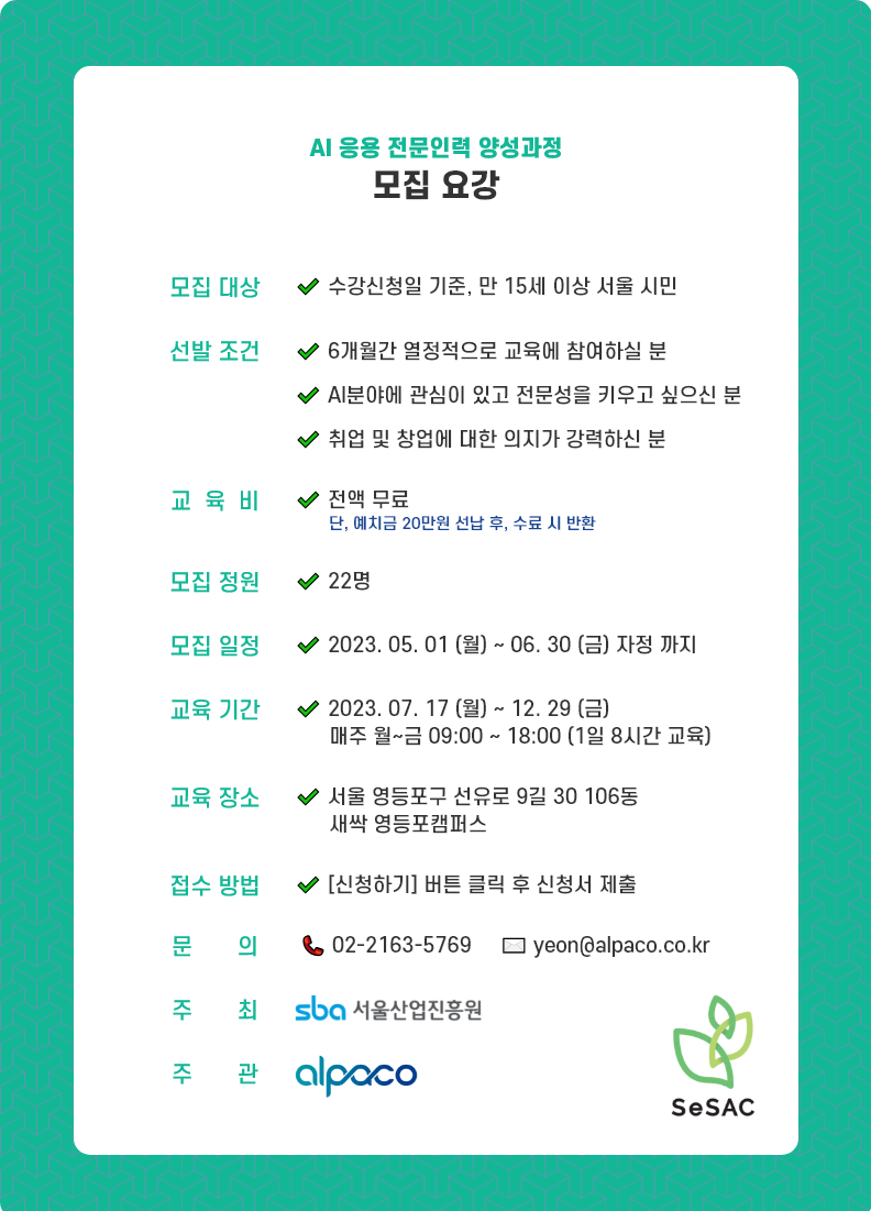 영등포 새싹 - AI 응용 전문인력 양성