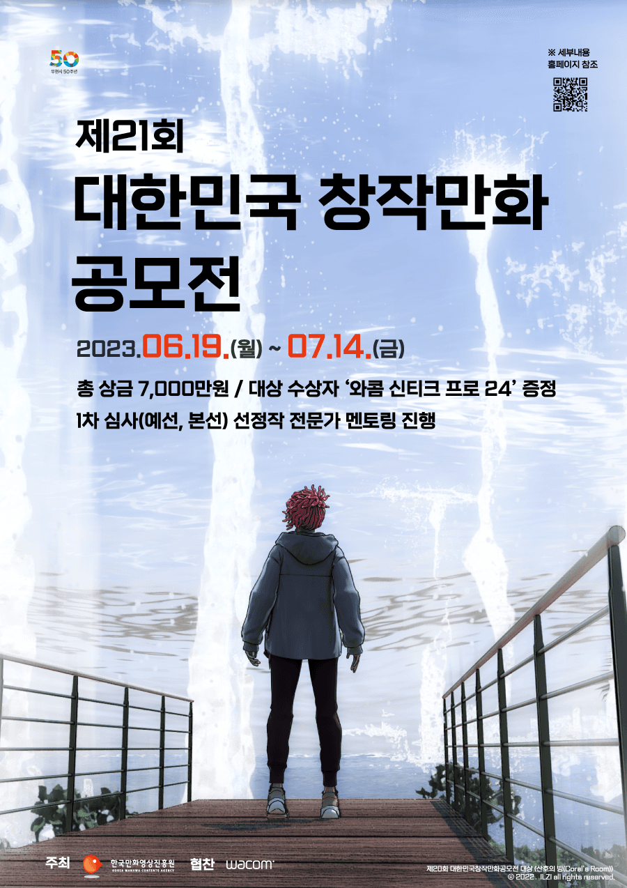 1. 공고개요 ○ 참가자격 : 만 19세 이상의 모든 만화 창작자 ○ 공모부문 : 만화 및 카툰 ○ 접수기간 : 2023년 6월 19일(월) 10:00 \~ 7월 14일(금) 15:00 ○ 시상내역 : 총 10작품 선정