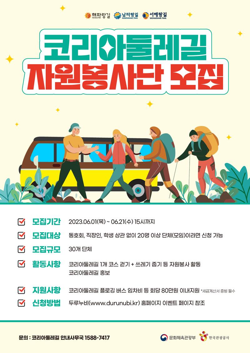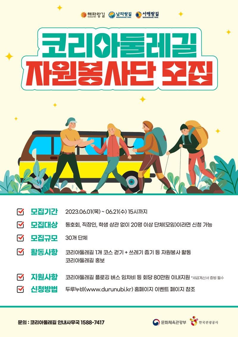 코리아둘레길을 걸으면서 여행도 하고 코리아둘레길을 깨끗하고 아름답게 가꾸는 일에 함께 할 "코리아둘레길 자원봉사단"을 모집합니다 ♡