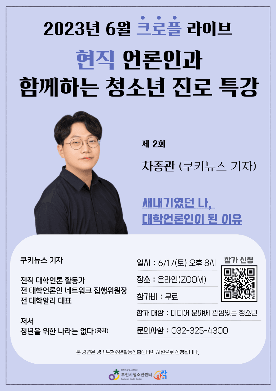 < 이런 분들을 위한 강연이예요 > 🙋♀️ 언론 계열 진로를 고민하고 있는 청소년 🙋♀️ 언론사 취업을 준비하고 있는 예비 언론인 🙋♀️ 대학언론 입사를 고민하고 있는 예비 대학언론인
