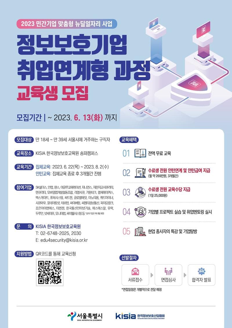 정보보호기업 취업연계형 과정(정보보호산업 맞춤형 인재 양성 과정) 2023 민간기업 맞춤형 뉴딜일자리 사업