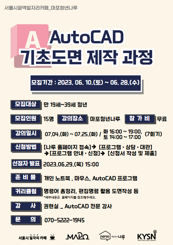 #마포청년나루 #청년공간 #취창업프로그램 #무료취창업프로그램 #도면제작 #AutoCAD #오토캐드 #기초도면완성