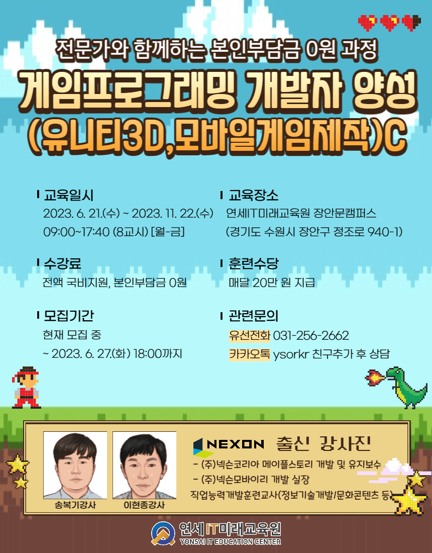 [문의처] 연세IT미래교육원 장안문 캠퍼스(구.연세직업전문학교) 16269 경기도 수원시 장안구 정조로 940-1(영화동, 연세IT미래교육원 빌딩) Tel : 031-256-2662 Fax : 031-256-2663