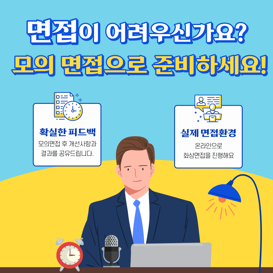 안녕하세요! 면접이 어려우신가요? 스타트업부터 대기업 취업까지 경험으로 도움을 드리는 “잇기”입니다. 저희 잇기를 만나 중견기업 \~ 대기업 취업에 성공하신 분이 계십니다. 모의면접 만족도 평점 5점/5점으로 신청자분 한분을 위한 면접을 준비하여 도와드립니다. ☆ 실제 모의면접 후기 ★ - 실제면접보다 어려워서 실전에서 쉽게 답변이 나왓어요. - 제가 생각한 답변의 방향성에 공감하고 같이 고민해주셔서 감사해요. - 생각하지 못했던 부분을 생각하게 해주는 좋은 면접이였어요. 대기업 출신 전문가 2명이 여러분이 원하는 기업에 맞추어 질문지를 구성하여 진행합니다. 면접가능 직군 : IT 기획(APP/WEB/서비스), 상품, PM/PO, 마케팅, HR, 인사, 일반 사무직 ■ 모집기간 2023년 06월 23일까지 모집 ■ 면접안내 1. 면접관 2명 : 면접자 1명으로 60분동안 진행이 됩니다. 2. 온라인으로 화상 면접진행이 됩니다. ( “Discord” 앱 활용 ) 3. 실제 면접과 같은 복장으로 준비해주세요\~ 4. 카메라의 경우 핸드폰으로도 사용 가능합니다. 5. 아래양식에 맞춰 신청해 주신 후 신청 요일과 시간에 맞추어 진행합니다. 6. 진행시간에 스케줄이 있는 경우 조율이 될 수 있습니다. ■ 면접구성 1. 5분 : 면접 진행안내 및 1분 자기소개발표 2. 20분 : 직무면접 진행 3. 20분 : 인성면접 진행 4. 5분 : 면접진행 정리 5. 10분 : 1차 피드백 진행 및 종료 ■ 진행가격 1. 면접 진행비 : 100\,000원(정상가) >> 80\,000원(할인가) ***방학이벤트 진행 중**