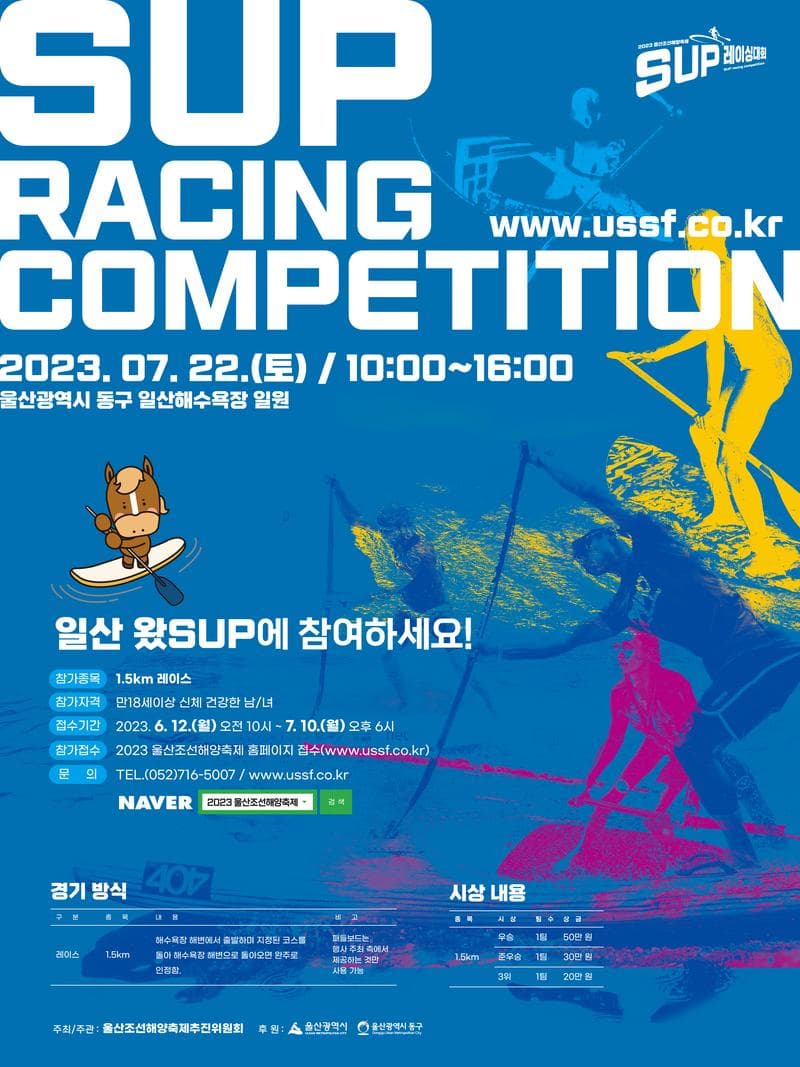 2023 울산조선해양축제 일산 왔SUP! ■공모 주제 -레져스포츠 SUP 레이싱 대회를 통하여 건강 증진과 건전한 여가 활동의 기회 제공하는 액티비티한 체험