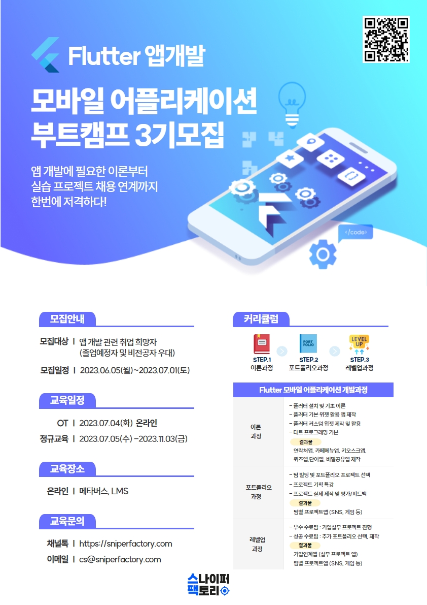 2023년 Flutter 모바일 어플리케이션 부트캠프 과정 3기 수강생 모집