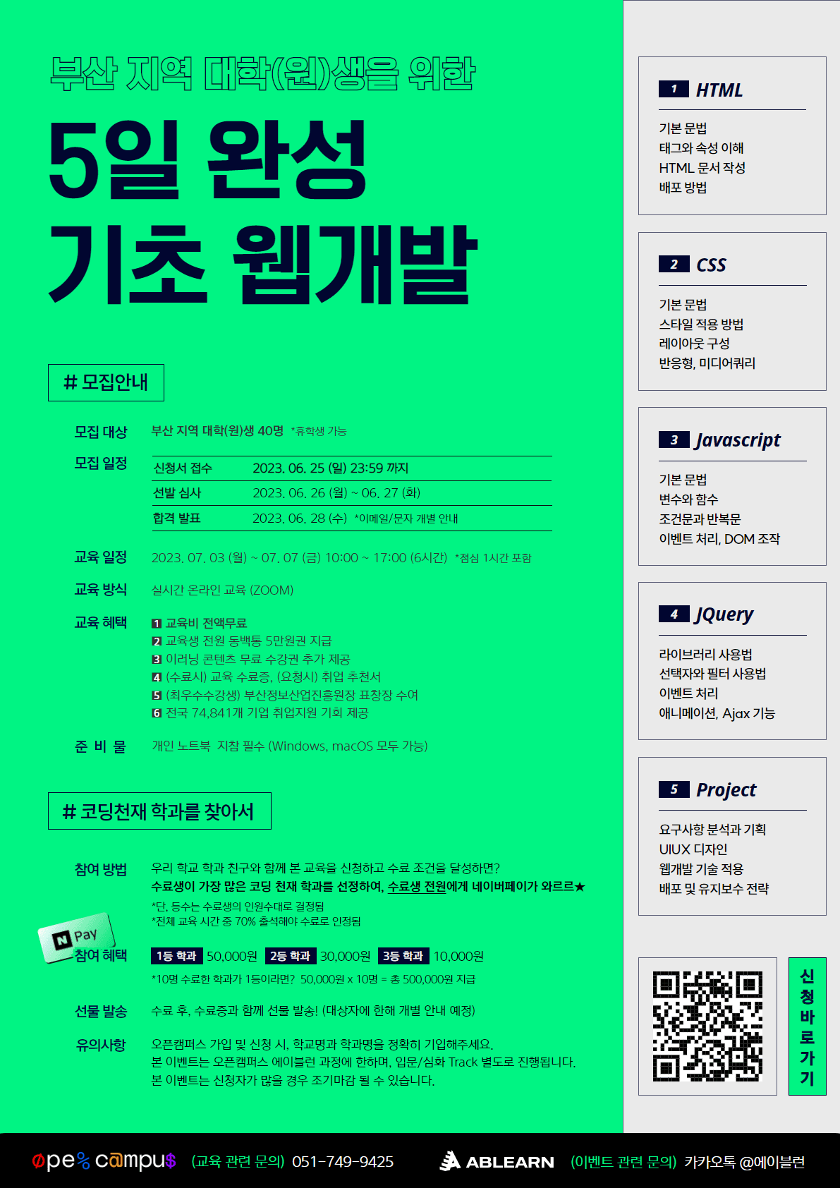 부산정보산업진흥원과 에이블런이 함께하는 5일🖐️ 완성 기초 웹개발 교육 모집중!