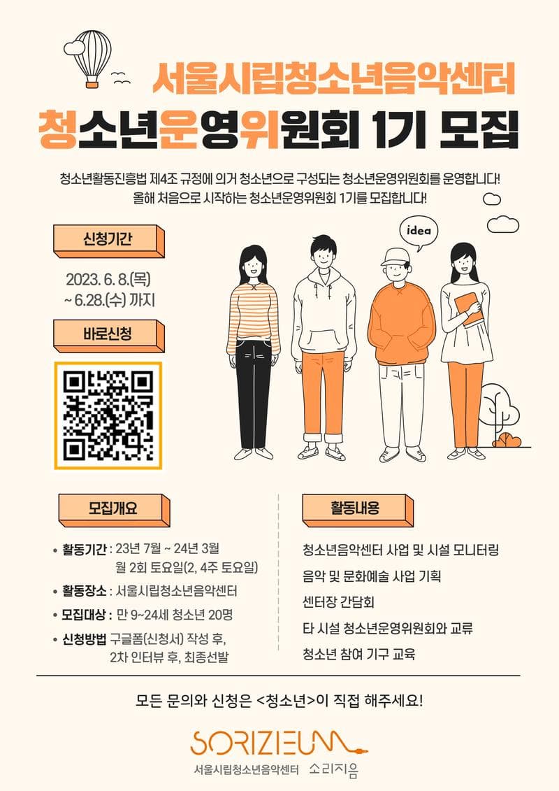 ▶활동대상: 서울시 만 9\~24세 청소년 20명 ▶활동장소: 서울시립청소년음악센터