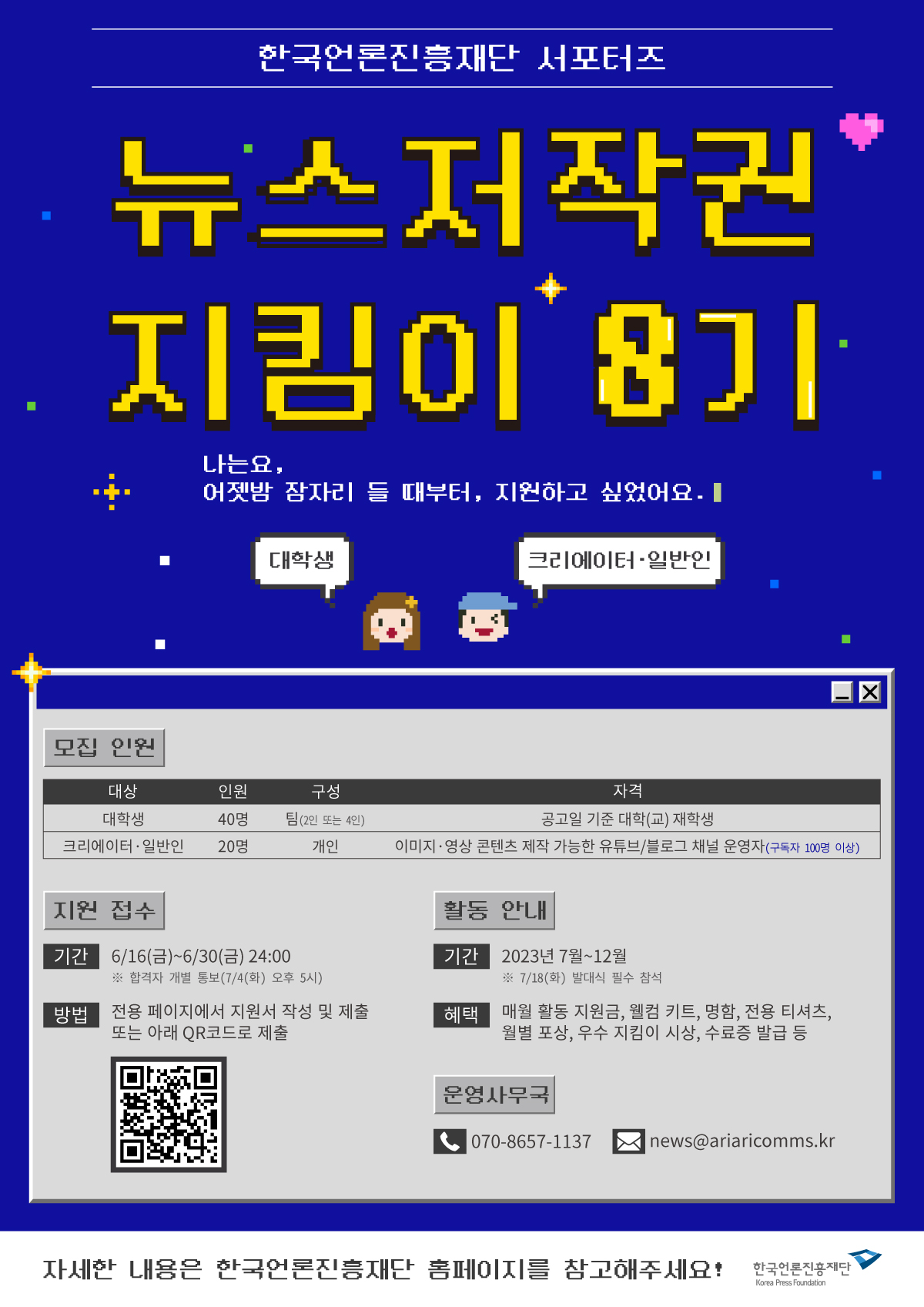 ■ 공모 주제 뉴스 저작권 인식 제고를 위한 지킴이 서포터즈 8기 모집