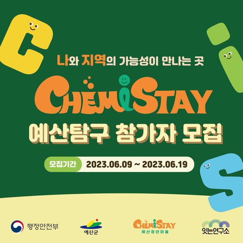 예산 청년마을 CHEMiSTAY에서 3박 4일 예산탐구 프로그램 참가자를 모집합니다!
