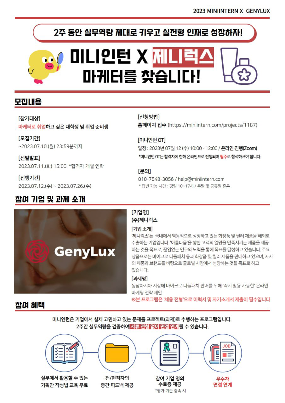 글로벌 프리미엄 뷰티 브랜드 <제니럭스>와 함께 실무 과제를 수행하면서