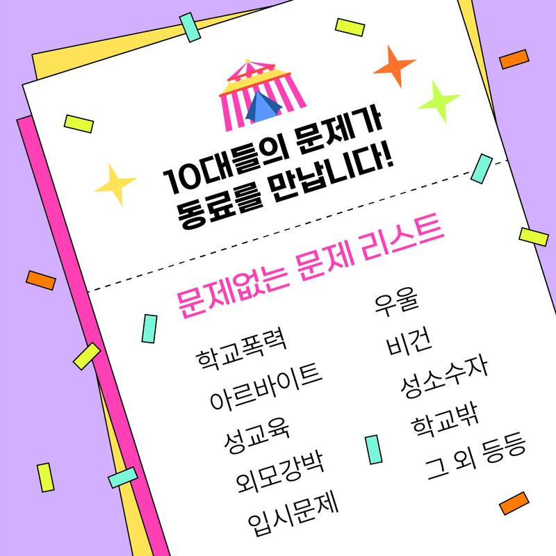 문제없는 스튜디오 유튜브 에 올라갈 영상을 스토리에디터들의 주도로 만듭니다. 학교폭력, 성교육, 학교밖, 알바, 우울, 비건, 성정체성, 퀴어 등등 다양한 주제로 청소년 에디터들이 그동안 작업한 콘텐츠들이 올라와있어요.