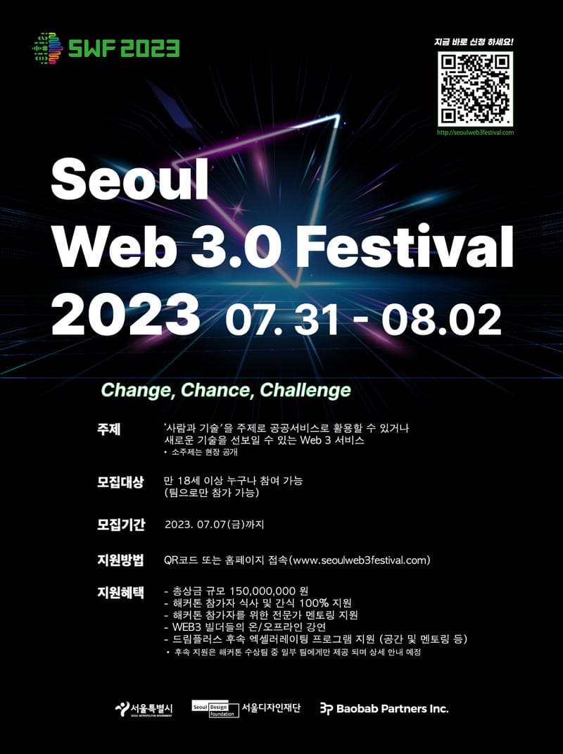 서울시와 서울디자인재단, 바오밥파트너즈가 서울시 최초의 웹3.0 페스티벌을 개최합니다.