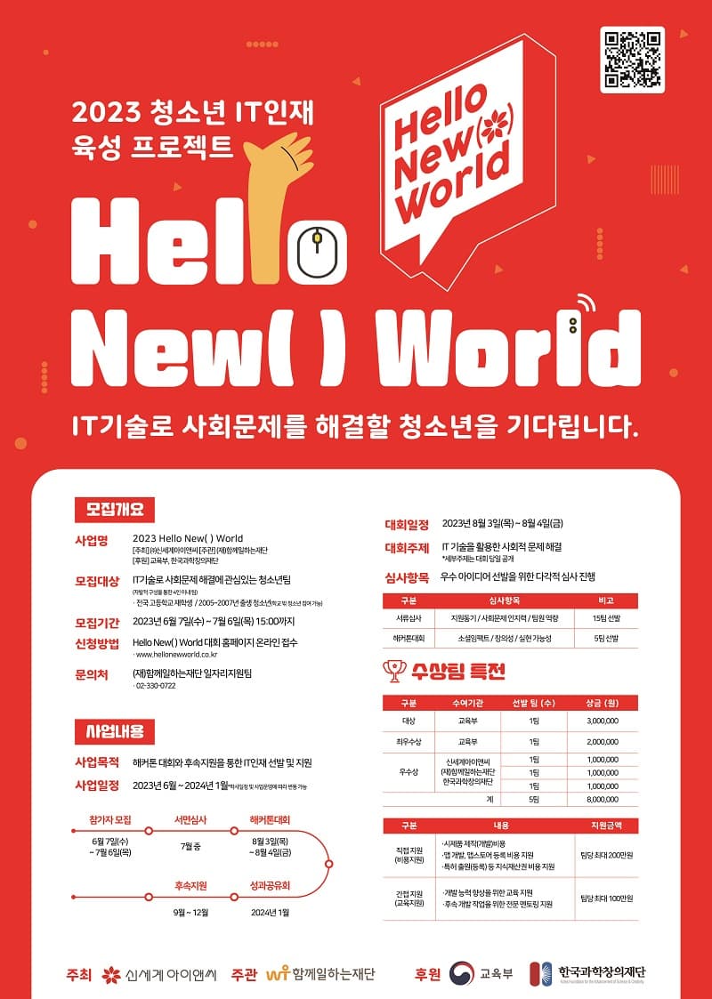 ○ 선발대상 IT기술로 사회문제 해결에 관심 있는 고등학교 재학생 or 2005\~2007년생 청소년 (자발적 구성을 통한 4인 이내 팀)