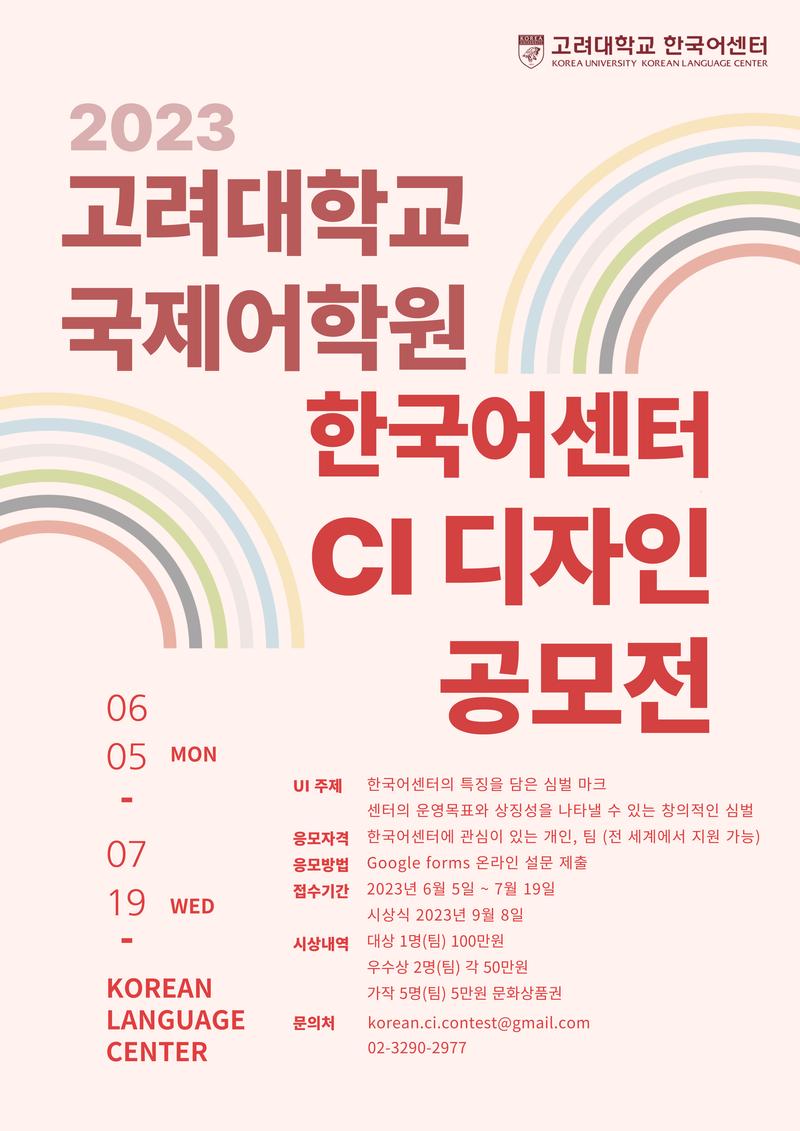 2. 응모 자격 및 방법 - 응모 자격: 한국어센터에 관심이 있는 개인\, 또는 단체(전 세계 누구나 응모 가능!) - 응모 방법: 온라인 구글 폼 설문(파일 업로드 가능)을 통한 신청 - 출품 형식: jpg\, ai 파일 또는 파일 열람이 가능한 URL 형태로 제출(글씨체, 색상 등 명시 필요) 출품 점수 다수 출품 가능(시상은 1점에 한정) - 공모 기한: 2023년 7월 19일(수)까지 (한국시간)