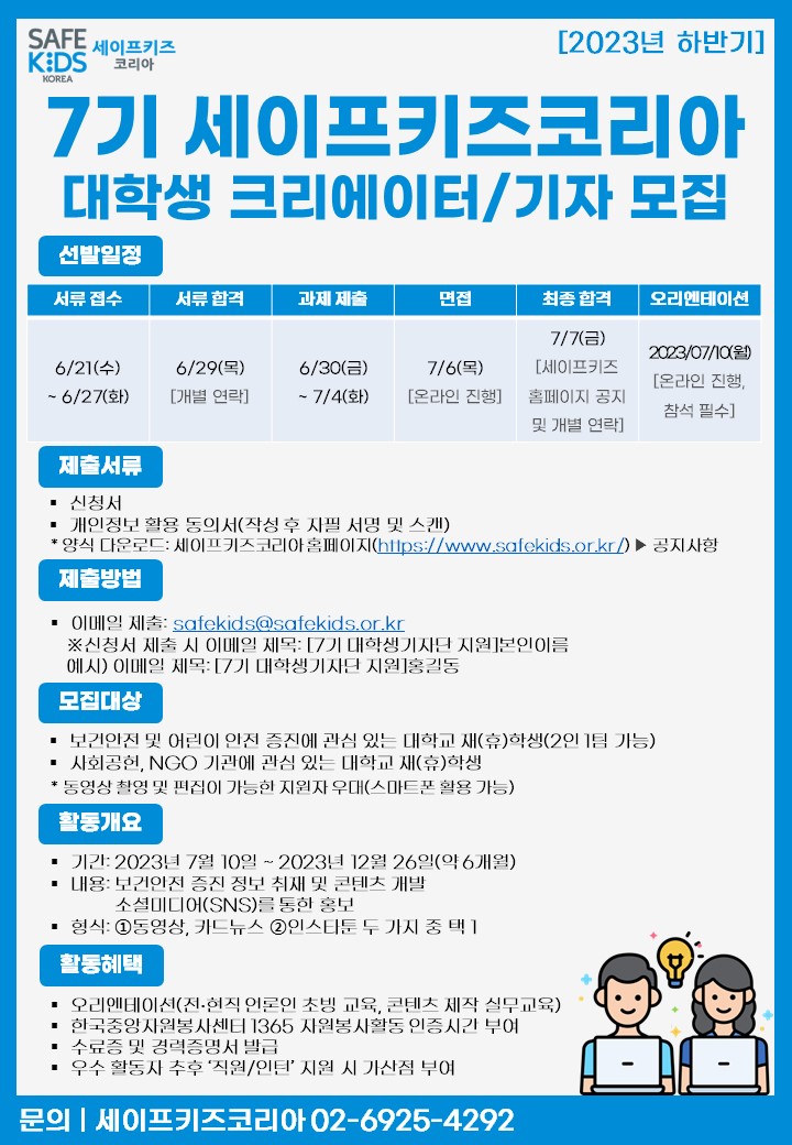 더 자세한 내용은 세이프키즈코리아 홈페이지 공지사항을 참고하세요!