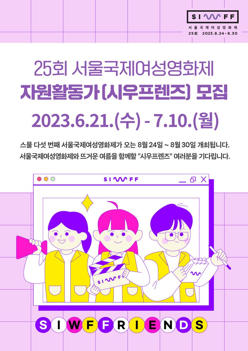 25회 서울국제여성영화제 자원활동가 시우프렌즈(SIWFFRIENDS) 모집 (\~7/10)
