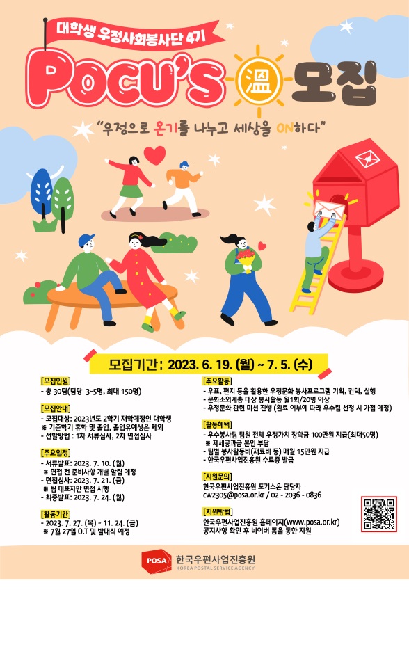 2023 대학생 우정사회봉사단 “포커스온(POCUS溫)” 4기 모집 “우리의 溫(온)기로 세상을 ON하자!”