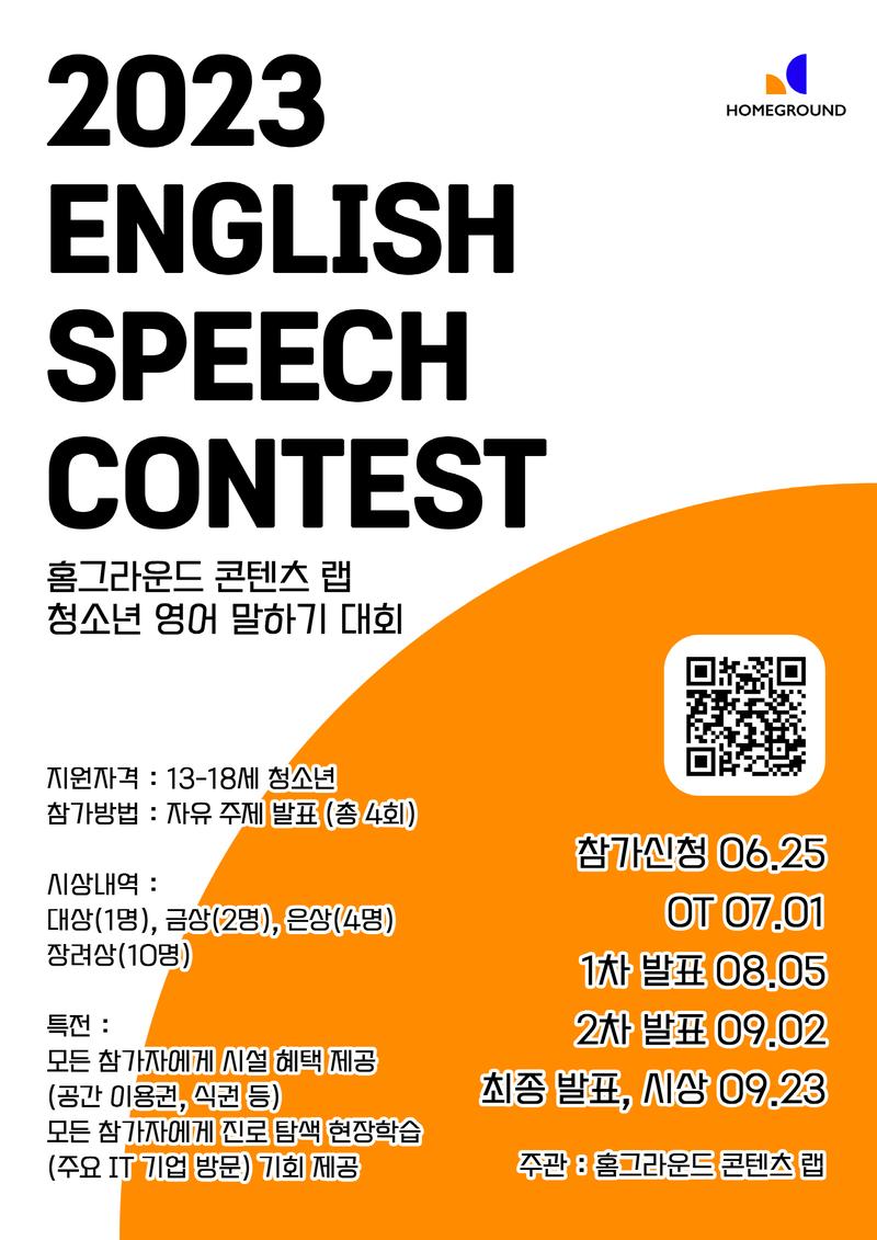 홈그라운드 콘텐츠 랩에서 2023 영어 말하기 대회를 개최합니다.
