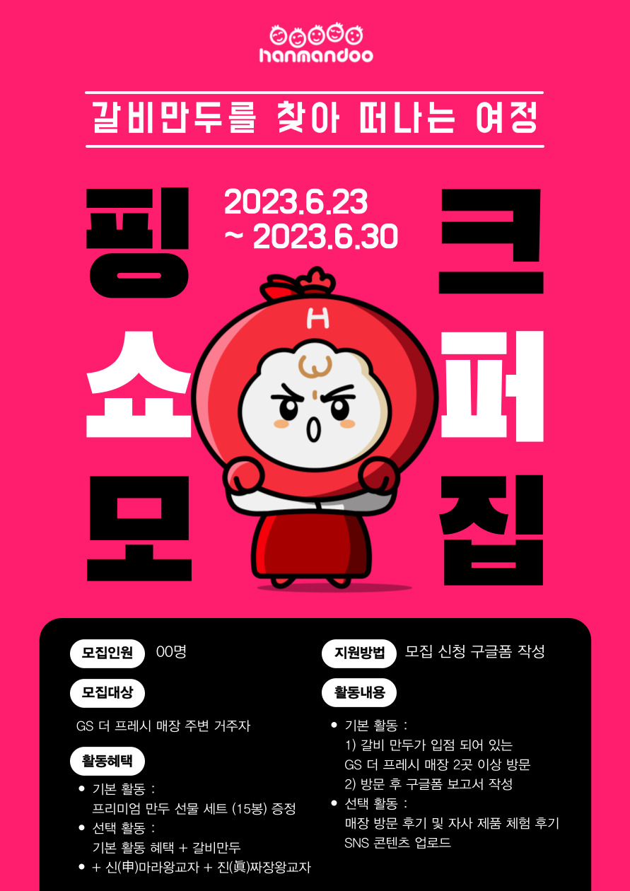 한만두 미스터리 쇼퍼 '핑크 쇼퍼' 모집 중!