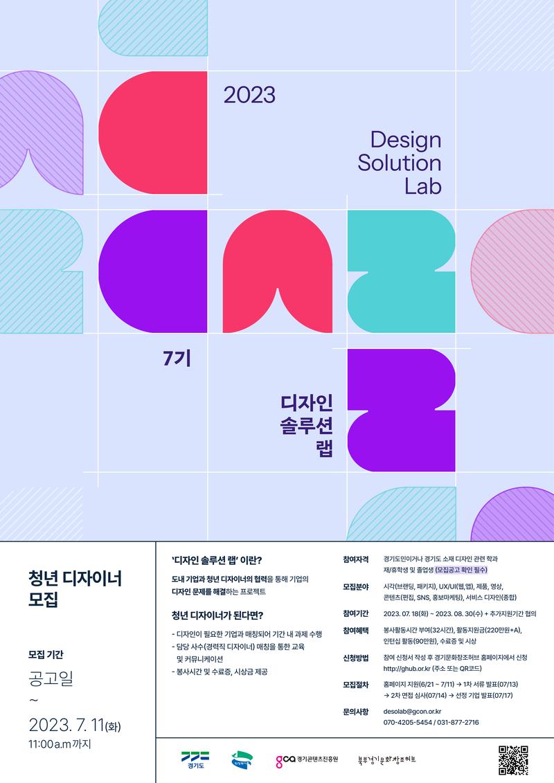 ▶ 문의사항** 디자인 프로젝트 솔루션 랩 운영사무국 070-4205-5454 / desolab@gcon.or.kr