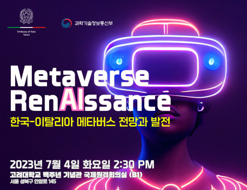 안녕하세요? 한국메타버스산업협회입니다. 과학기술정보통신부와 주한 이탈리아 대사관이 협업하여 메타버스의 미래를 전망하고 지속 가능한 발전방향을 모색하기 위한 공동 세미나가 7월 4일, 고려대학교 백주년기념관 국제원격회의실에서 개최될 예정입니다. 관심있는 분들의 적극적인 참여 부탁드리겠습니다. ※ 본 행사 이 후 네트워킹 시간에 제품 전시 시연을 통해서 이탈리아 기업과 교류를 원하시는 기업은 하단 메일로 별도로 연락 주시면 고맙겠습니다. ■ 행 사 명: Metaverse RenAIssance 한국-이탈리아 메타버스 전망과 발전 ■ 행사일시: 2023년 7월 4일(화) 오후 2시 30분\~ 18시 30분 ■ 행사장소: 고려대학교 백주년 기념관 국제원격회의실(B1) ■ 참여방법: 상단 신청하기 클릭하여 온라인 구글(폼) 작성 후 제출 (https://forms.gle/jBfp8LKDu13KWrM36) ■ 문 의: 한국메타버스산업협회 정책기획실 주정현 차장(TEL: 070-8765-8440/mjjh@k-meta.or.kr)