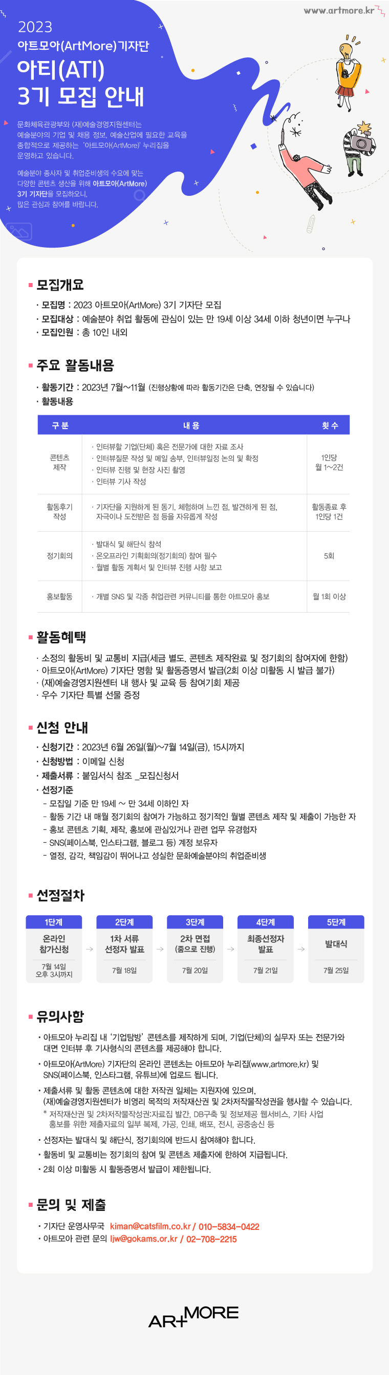 [예술경영지원센터] 2023 아트모아(ArtMore) 3기 기자단 모집 안내