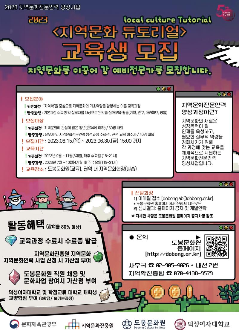 [문화체육관광부 주최 / 지역문화진흥원, 도봉문화원 주관] 2023 지역문화전문인력 양성사업 <2023 지역문화 튜토리얼> 교육생 모집