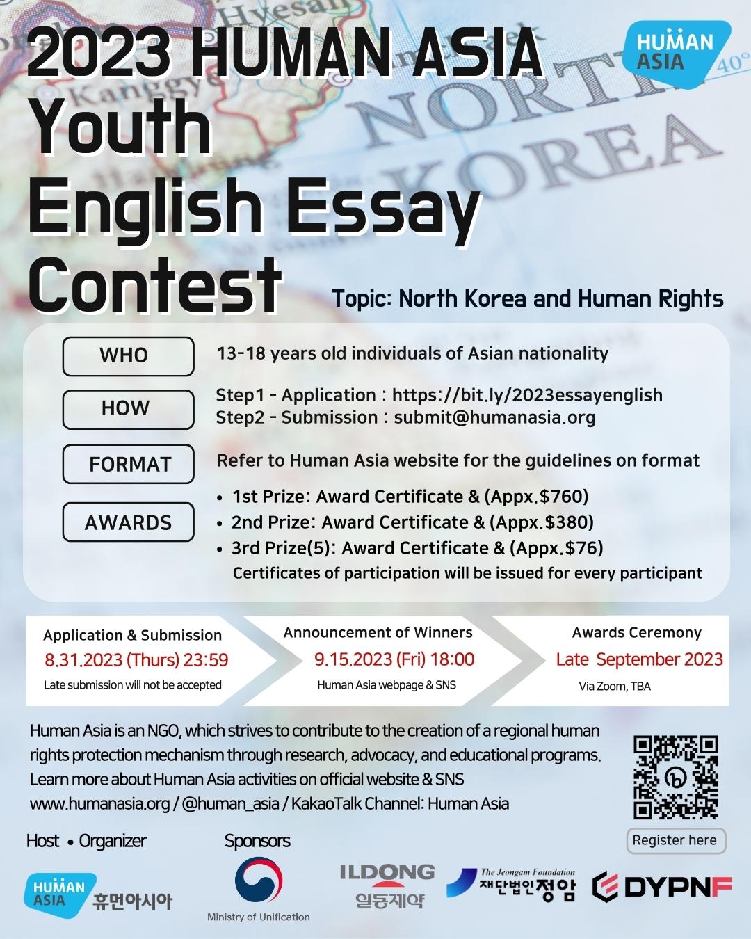 ○ How to apply - Complete the registration form at http://bit.ly/2023essayenglish - Submit the essay to submit@humanasia.org