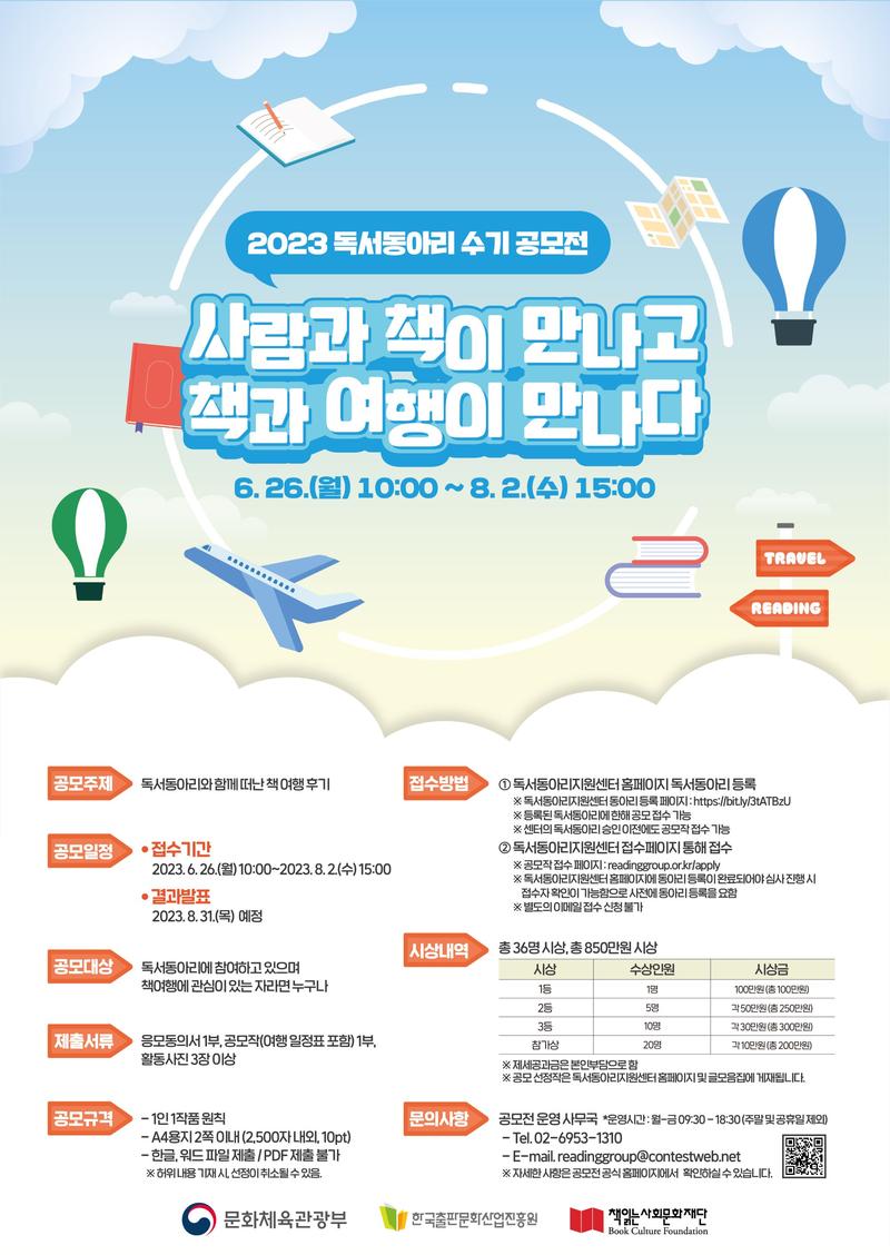 ◼ 문의사항 - 공모전 운영사무국 (월-금 9:30 \~ 18:30\, 주말 및 공휴일 제외) - Tel : 02-6953-1410 - E-mail : readinggroup@contestweb.net