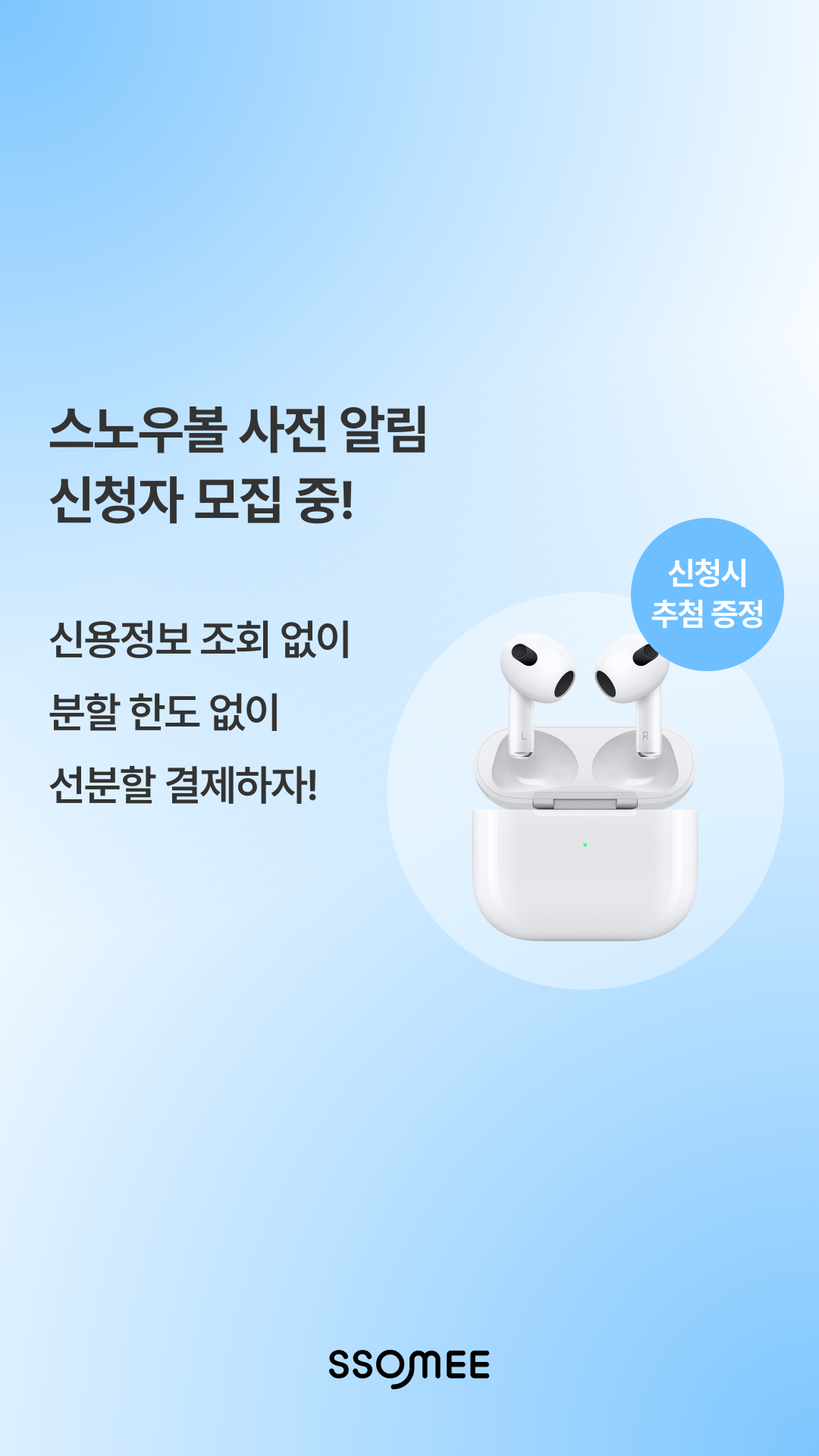 알림 신청하면? ☝️ 스노우볼 정식 출시 소식을 가장 빨리 알려드려요! ✌️ 최.대.한. 많은 친구에게 스노우볼을 소개해 주세요! 친구와 함께 서포터즈 신청 시 추첨을 통해 에어팟을 드려요! 친구를 많이 데려올수록 당첨율은 UP!