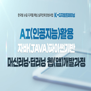[더조은아카데미 - 인천캠퍼스] 훈련과정 - [K-Digital] AI(인공지능) 활용 자바(JAVA)\, 파이썬 기반 머신러닝\, 딥러닝 웹(앱) 개발 과정 교육일정 - 2023년 07월 26일 \~ 2024년 01월 18일 교육시간 - 09:30 \~ 18:30 (주5일 수업 / 일일 8시간) 교육비용 - 전액국비지원** 교육문의 - (통합) 02-703-7025 / ocm7607@naver.com