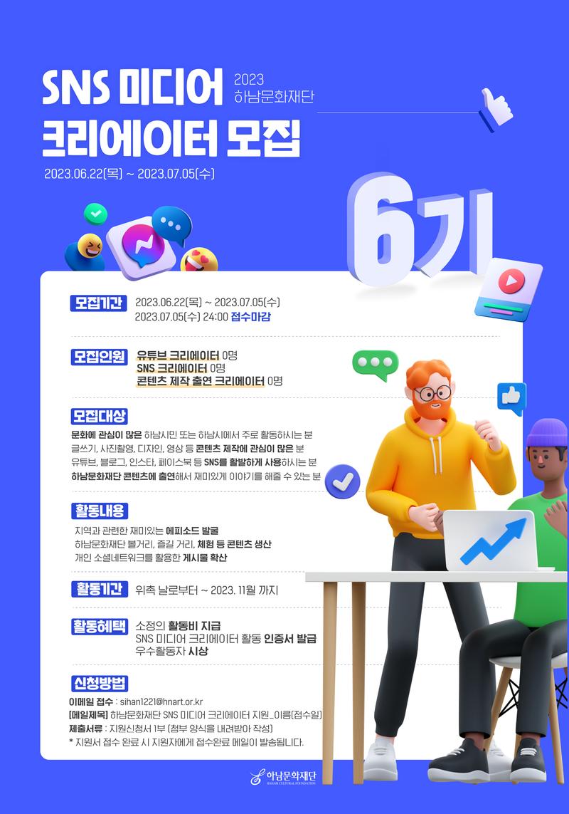 (재)하남문화재단의 SNS 미디어 크리에이터 6기 모집 공고합니다.