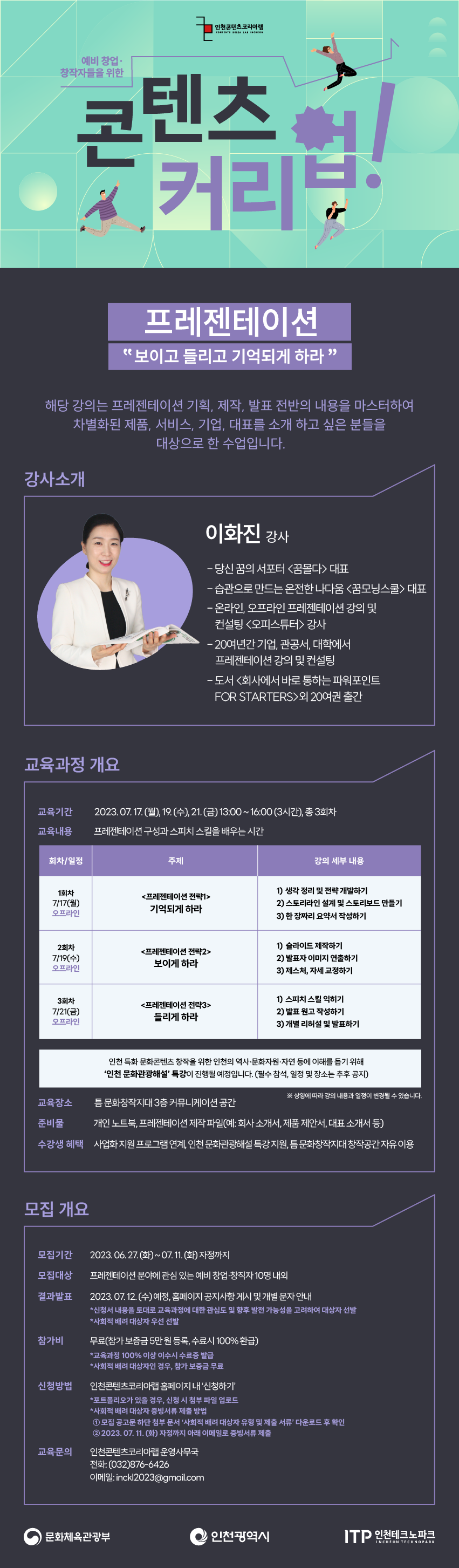▶ 교육문의: 인천콘텐츠코리아랩 운영사무국 032-876-6426 / inckl2023@gmail.com