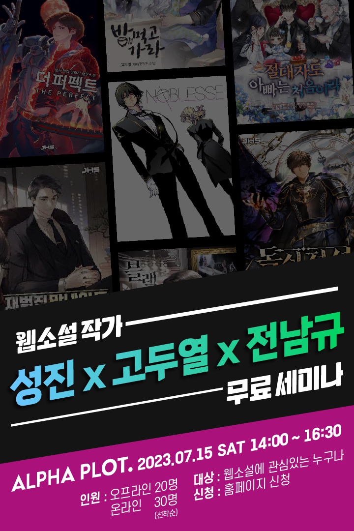 ▷ 강연 정보 1. 주제 : 웹소설로 월 1억의 작가가 되기까지와 실수를 줄이는 방법