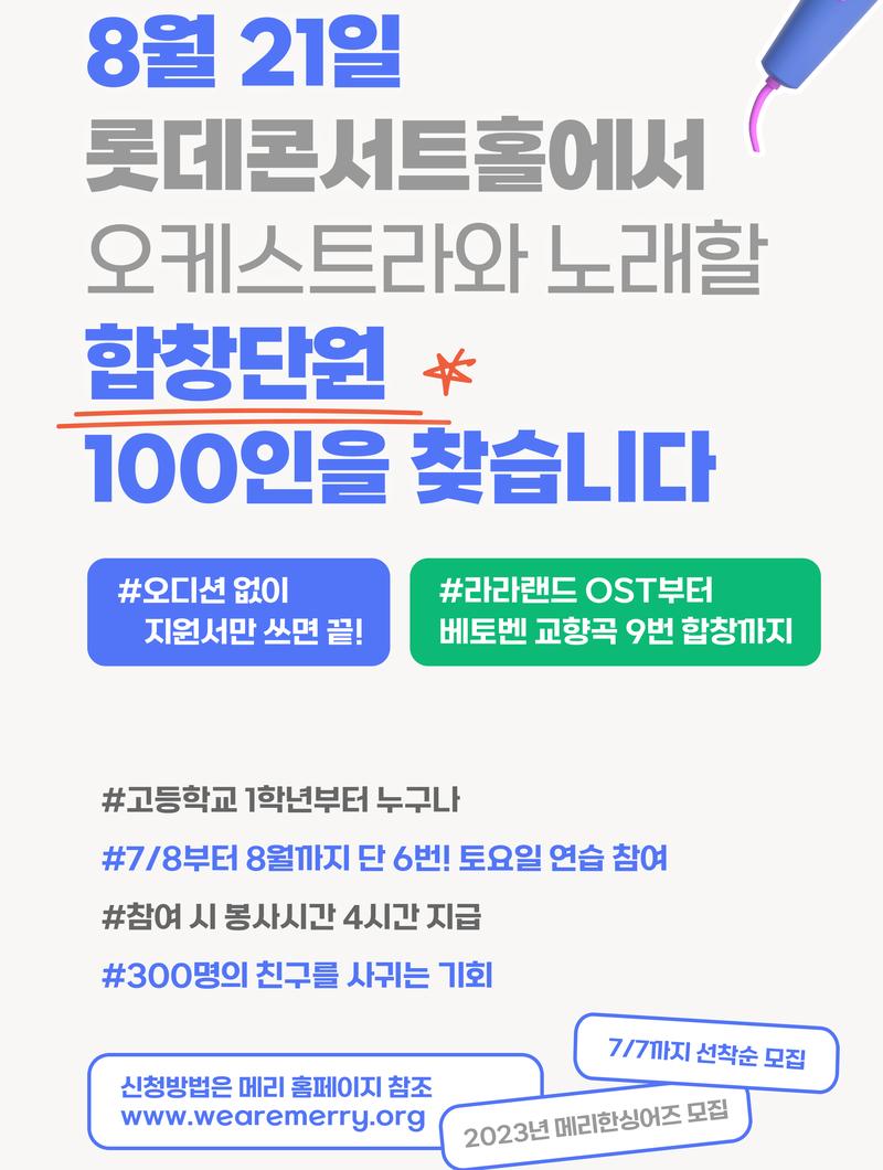 문화예술봉사단 <메리(MERRY)>에서 200여 명의 오케스트라와 함께 노래할 합창단원을 찾습니다