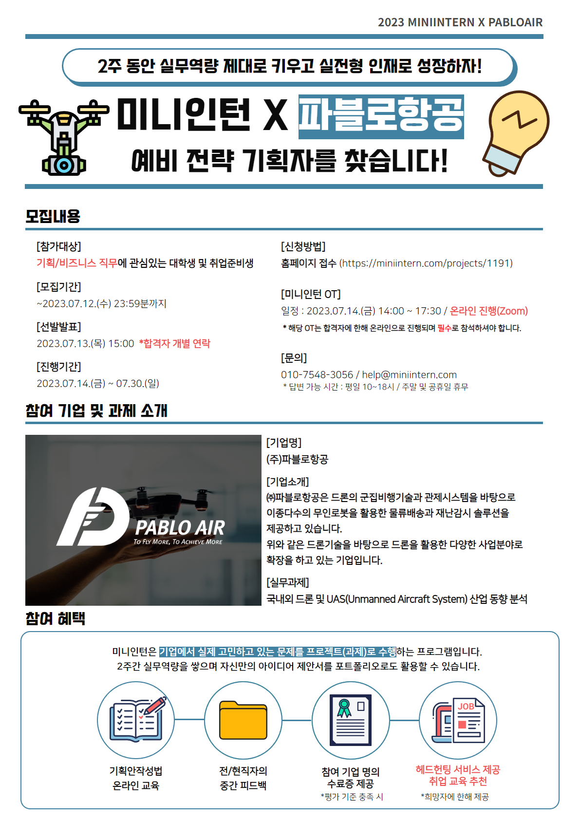 드론/무인 항공 기업 '파블로항공'에서 '무인 항공기' 분야 기획/비즈니스 아이디어 주실 분 찾습니다!
