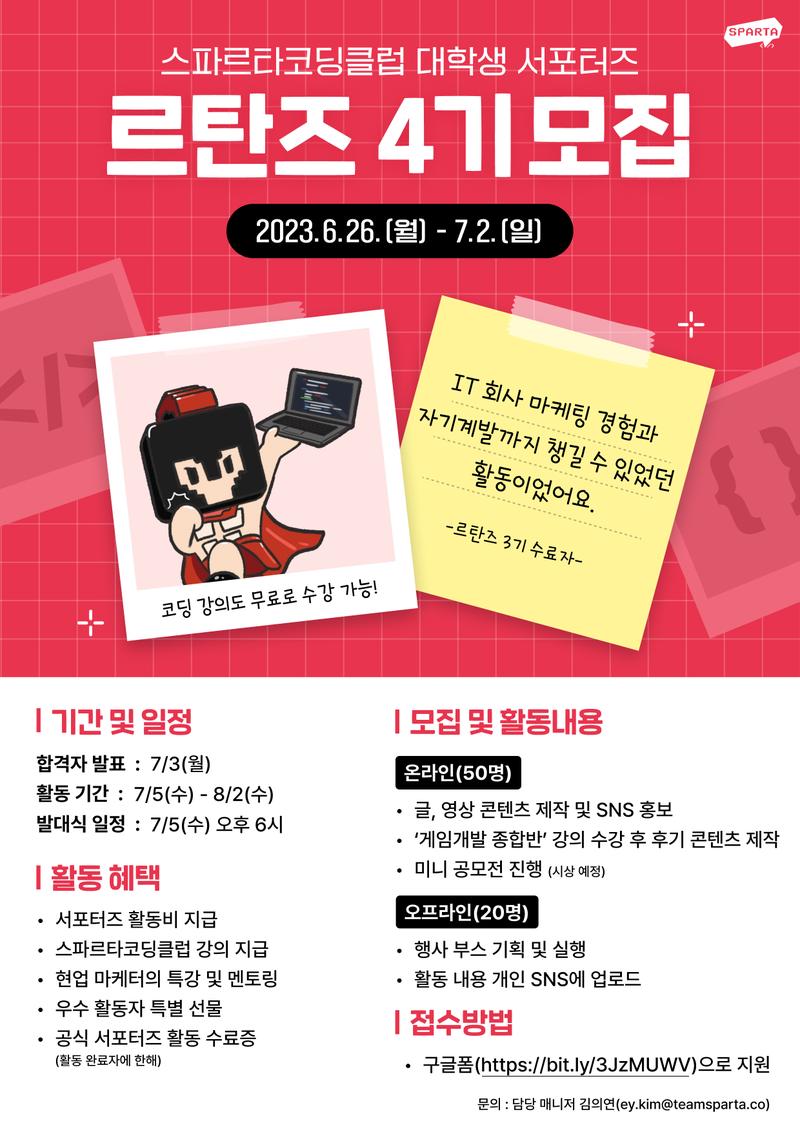 스파르타코딩클럽 대학생 서포터즈 르탄즈 4기 모집