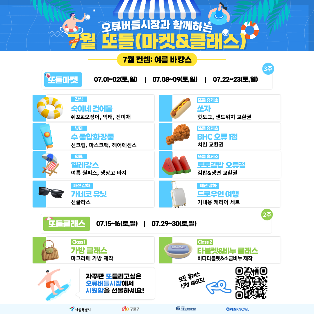 '로컬바이브 @버들' 휴식와 힐링이 필요한 시기, 자꾸만 또들리고 싶은 오류버들시장에서 시원함🌊을 선물하세요!